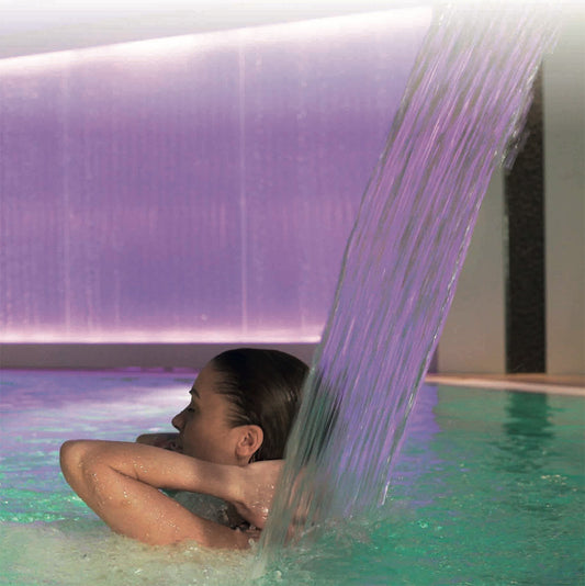 Le migliori Cascate d'acqua di design per la tua Piscina, anche con luci a LED.